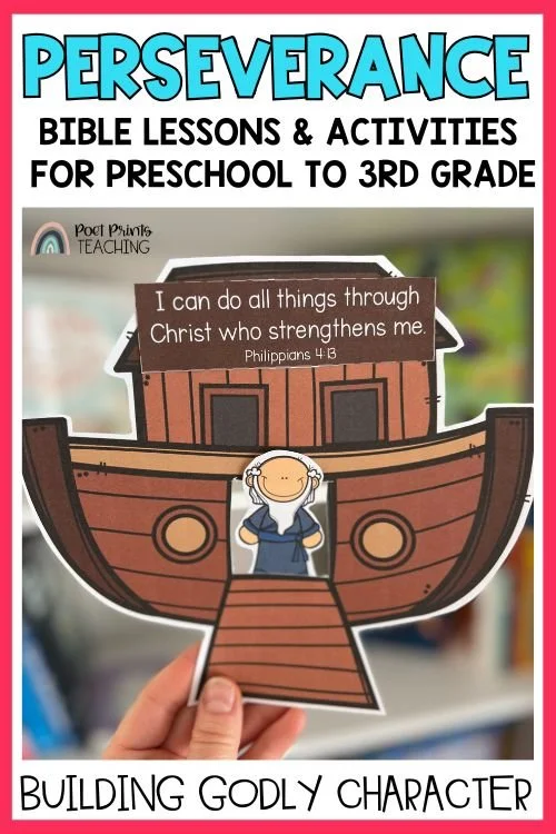Are you looking for an engaging way to teach children about the character trait of Perseverance? Use the Bible story of Noah to facilitate learning. Our scripted lessons, printable crafts, and discussion questions are a great resource to help kids learn about this important character trait.